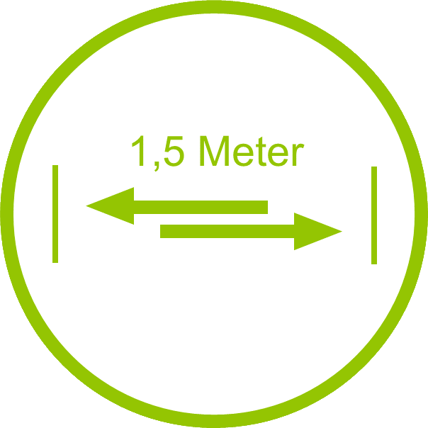 - Halte einen Mindestabstand von 1,5 Meter jederzeit ein