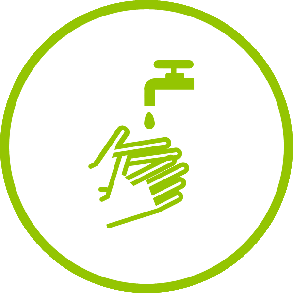 - Achte auf eine regelmäßige, gründliche Handygiene, insbesondere vor- und nach dem Toilettengang.