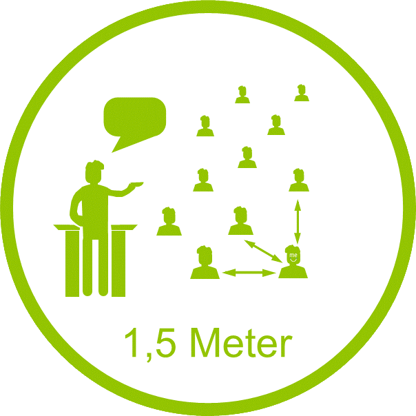 - Vor Beginn des Seminars werden alle Teilnehmenden über die gültigen Hygiene- und Abstandsregelen aufgeklärt.